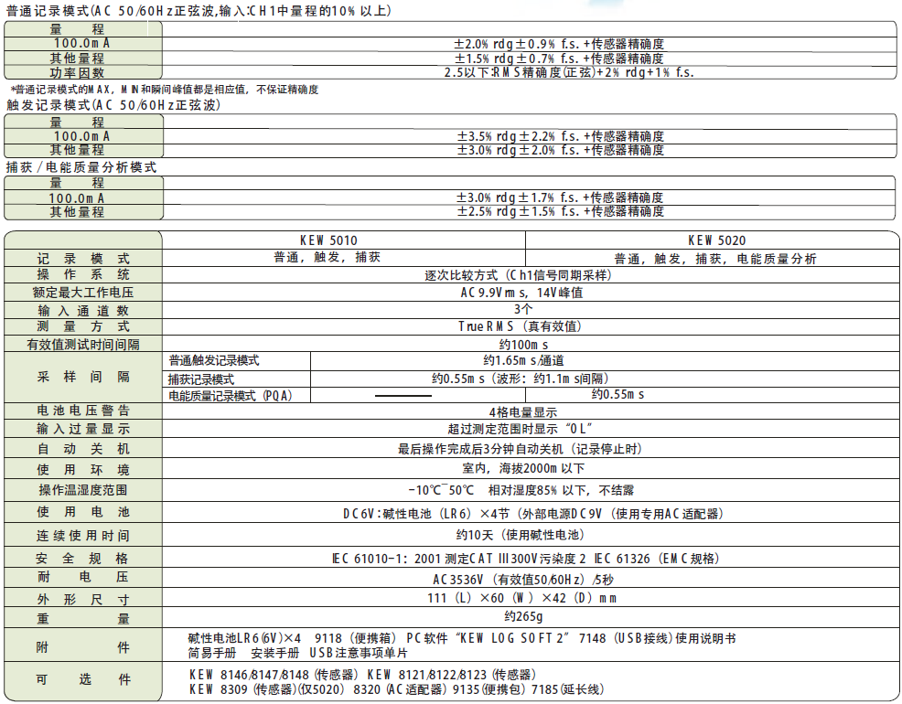 日本共立 KEW 5010/5020負(fù)荷記錄儀 相關(guān)參數(shù):