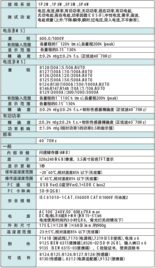 日本共立 KEW 6315電能質(zhì)量分析儀 相關(guān)參數(shù):