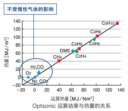 采用本公司獨立開發(fā)的Optsonic運算方式,可去除不具有燃料氣體中的熱量的氣體(N2、 O2、 CO2等)的影響,因此能夠進行高精度、高可靠性的燃料氣體的熱量測量。
