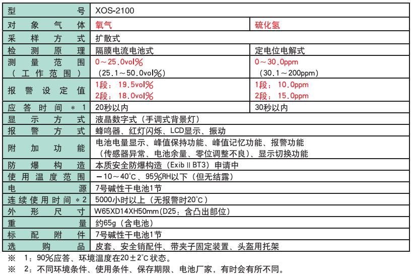 日本NEW-COSMOS(新宇宙) XOS-2100氧氣 /硫化氫濃度計產品技術參數: