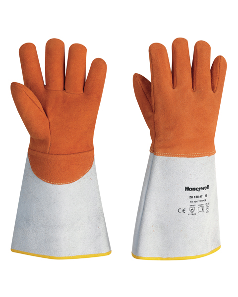 霍尼韋爾 進口皮革焊接隔熱手套 產品特點: 產品適合焊接操作時使用 ? 由防水隔熱粗革鹿皮縫合而成 ? 特殊拇指立體裁剪工藝,舒適靈活,長手套類型 ? 在該手套的夾層中襯有4 毫米厚的防火泡沫層,提供了更好的隔熱防火的效果 ? 18 厘米牛皮護腕,內層為棉質襯里 ? 手套由KEVLAR? 線縫合連接 ? 皮革厚度:1.3/1.5 毫米 ? 長度:38 厘米
