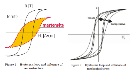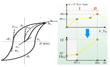 磁滯回線的不同參數: 矯頑力Hc,剩磁Br,飽和磁感應強度Bs,初始微分磁導率μin,最大微分磁導率μmax,磁滯耗損Wh,最大磁感應強度Bm,初始微分非磁滯磁導率μan,矯頑力Hc又是最能有效表征磁滯行為且穩定性良好的重要參數,其對材料微觀結構的變化及應力大小非常敏感,故能有效表征鐵磁性材料的安全狀態。