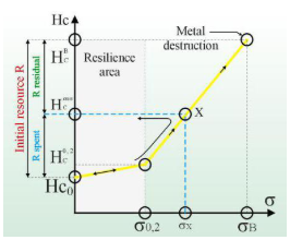 因此可以在2倍初始矯頑力增量范圍內來評估金屬的安全狀態:通過測量當前矯頑力值Hc,計算其與初始狀態與斷裂前數值之差額,預測工件的已服役壽命和殘余壽命