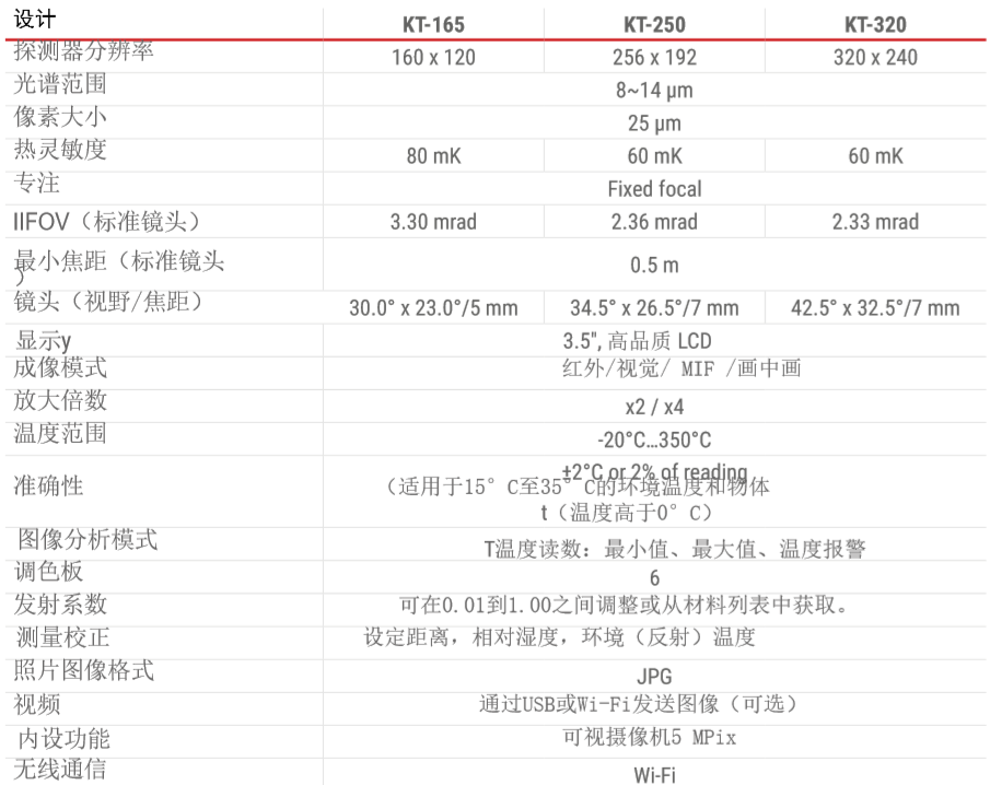 波蘭SONEL(索耐) KT-320 / KT-250 / KT-165熱像儀 相關(guān)參數(shù):