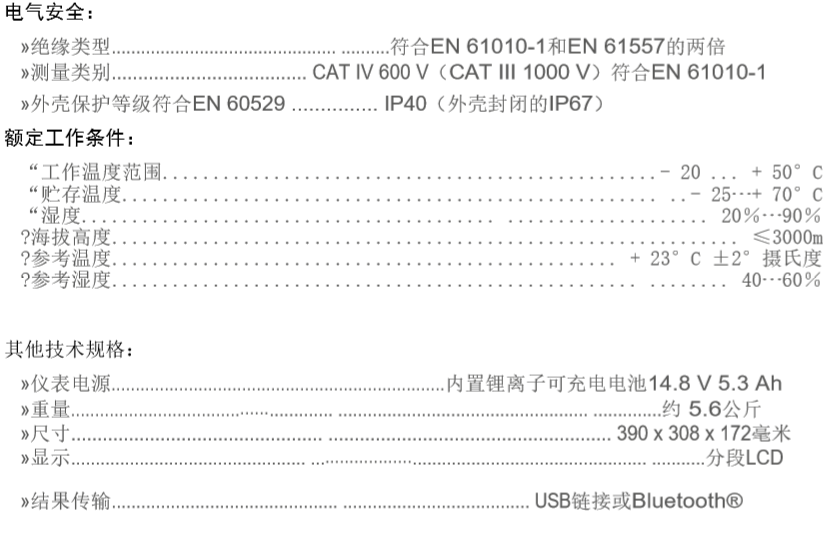 ?儀器符合標(biāo)準(zhǔn)EN 61557規(guī)定的要求。