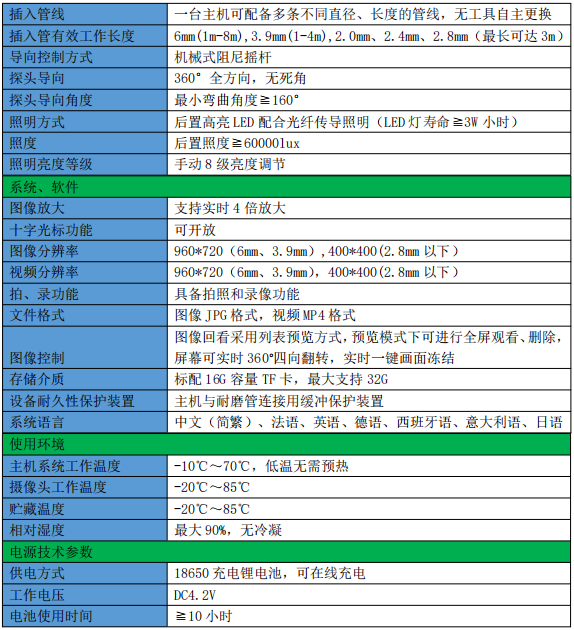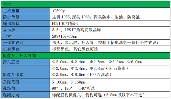 WS-E 探頭可更換系列工業(yè)視頻內(nèi)窺鏡 產(chǎn)品參數(shù):