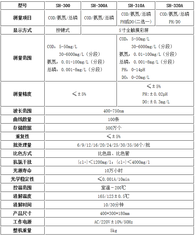 盛奧華 SH-300型水質(zhì)多參數(shù)速測(cè)儀 技術(shù)指標(biāo):