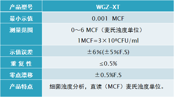 齊威 WGZ-XT 細菌濁度儀 產(chǎn)品參數(shù):