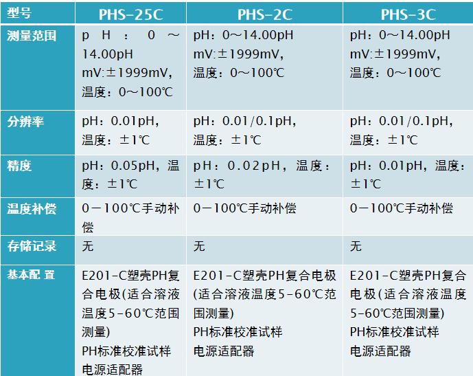 齊威 PHS-25C/2C/3C微機(jī)型臺式PH計(jì) 產(chǎn)品參數(shù):