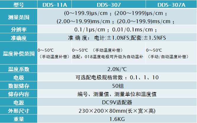 齊威 DDS-307A/307/11A微機型電導(dǎo)率儀 產(chǎn)品參數(shù):