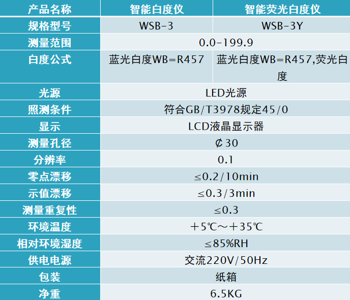 齊威 WSB-3/WSB-3Y臺(tái)式微機(jī)(熒光) 白度儀 產(chǎn)品參數(shù):