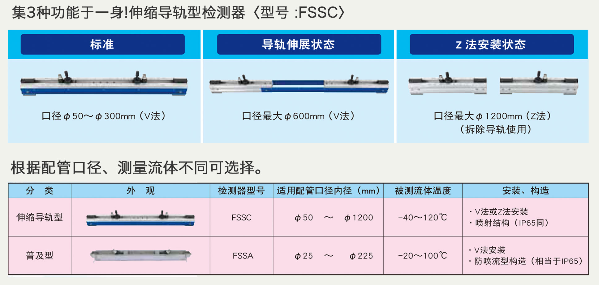 | 適用管道口徑 | 內(nèi)徑25~225mm(檢測器:FSSA) |