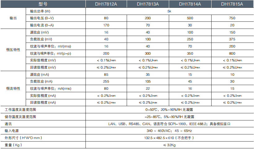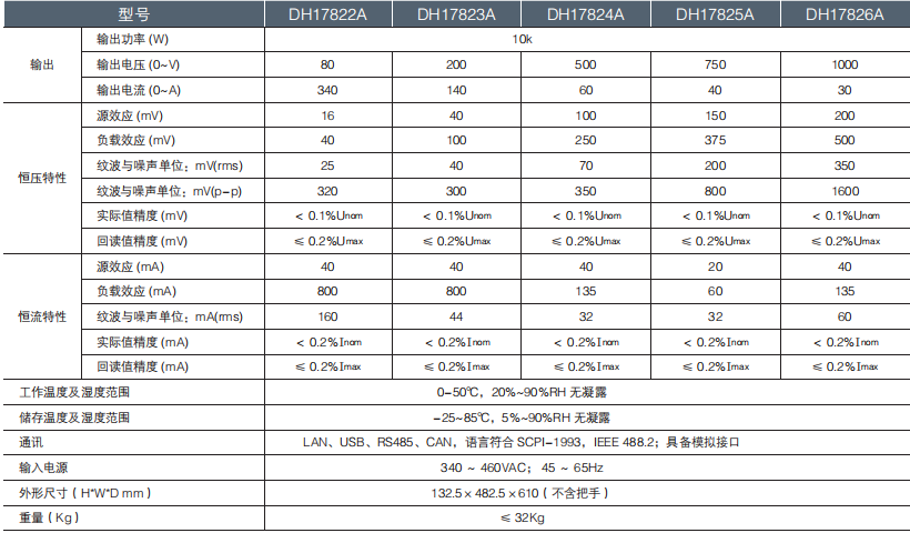 大華電子 DH17800A 系列大功率可編程直流電源 技術參數(shù):