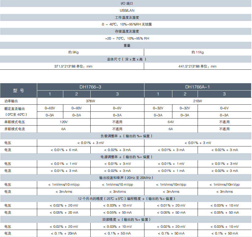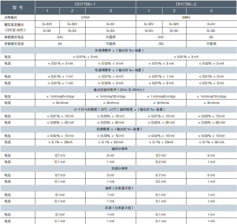 大華電子 DH1766 系列線性三路可編程直流電源 技術參數: