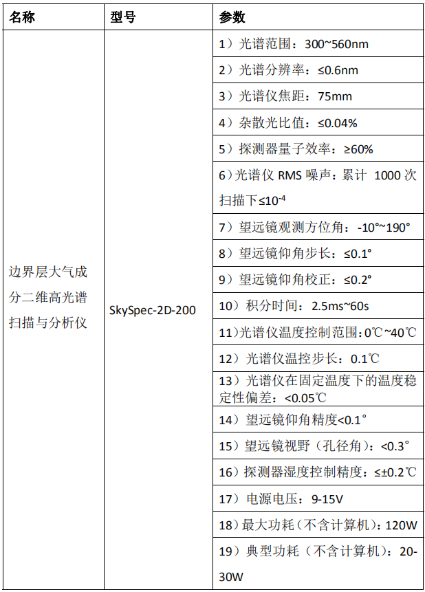 邊界層大氣成分高光譜掃描與分析儀(AHSA) 技術(shù)參數(shù):