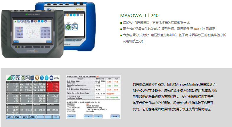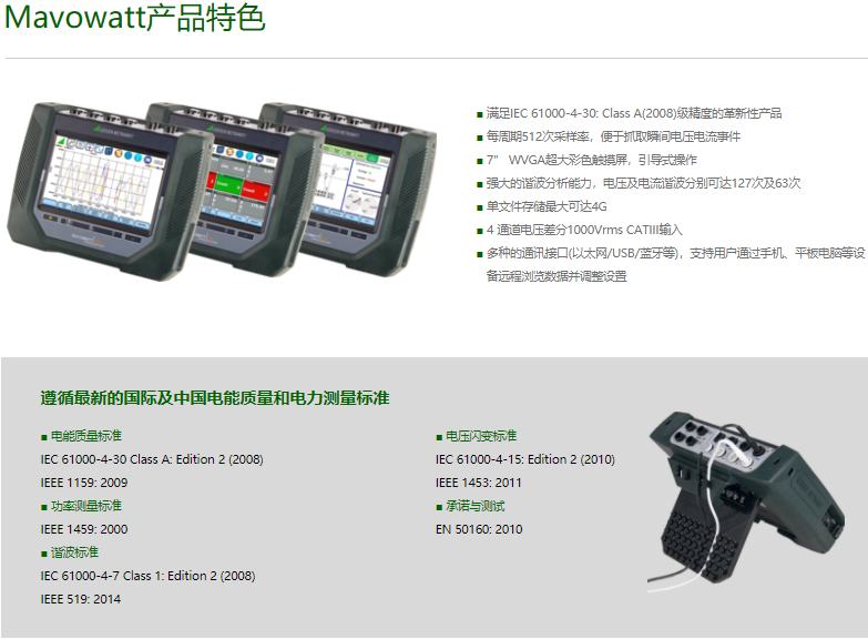 MAVOWATT系列電能質量分析儀用于監控,分析和記錄公共電網系統和工業用電中的電能質量參數。