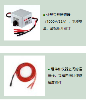 ■ 測量儀器標配負載隔離開關(1000 V/32ADC)與光伏組件隔開,確保安全