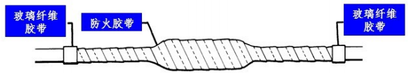 半重疊繞包,使防火膠帶與被包裹電纜貼和緊密、無褶皺;當新開一卷防火膠帶時,一般須從先前一卷的 100~150mm 處開始繞包。 PL-1624 防火膠帶沒有膠黏劑,一般用裝箱中所配的防火玻璃纖維帶固定后才算完成。