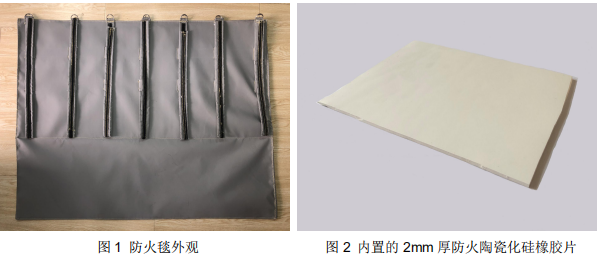 防火毯內置的防火陶瓷化硅橡膠片是一種在高溫下可以瓷化的新型復合硅橡膠材料, 其在常溫下保持硅橡膠的所有特性(如優異的耐候性、電性能等),在遇到高溫時轉化 為無機的陶瓷材料,在火災情況下,“陶瓷化”的堅硬殼體可以起到很好的防火、耐火、 隔火的作用,最高可耐 3000℃;