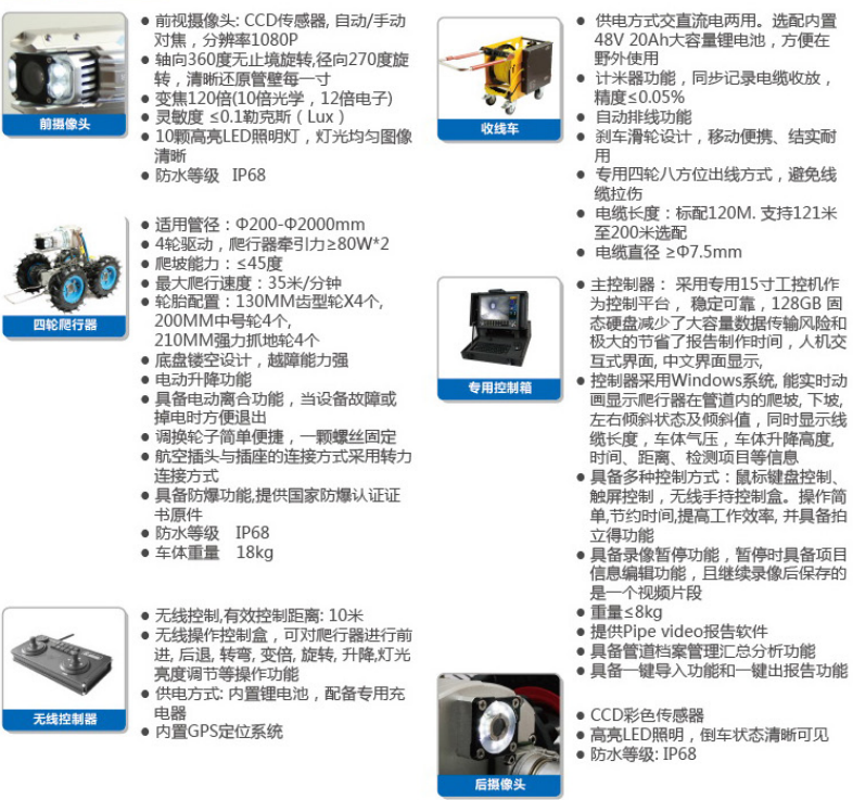 ?多重安全設(shè)計(jì),全方位保證設(shè)備安全:車(chē)體(不單只是鏡頭)防爆國(guó)家認(rèn)證證書(shū),IP68級(jí)防水設(shè)計(jì),10米水中正常工作,屏幕多組數(shù)據(jù)監(jiān)測(cè)車(chē)體狀態(tài),分別為內(nèi)置安全氣壓實(shí)時(shí)監(jiān)測(cè)、車(chē)體傾斜度實(shí)時(shí)監(jiān)測(cè)、車(chē)體在管道里的三位圖示監(jiān)測(cè)、高靈敏傳感器防翻車(chē)設(shè)計(jì)、急停按鈕等設(shè)計(jì),全方位有效保證設(shè)備安全。