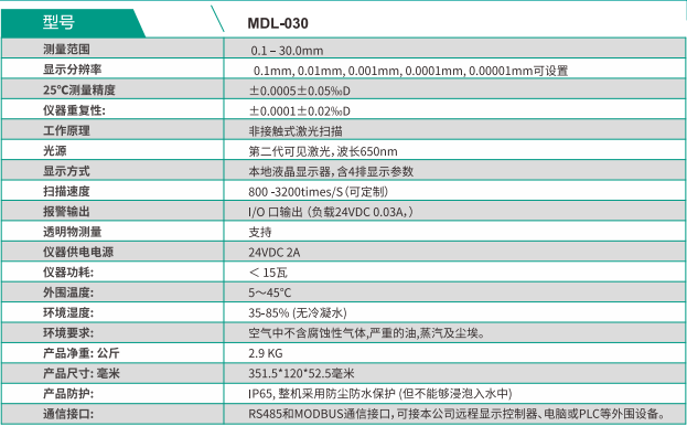 德國MIKROMETRY 激光測徑儀MDL-030技術(shù)參數(shù):