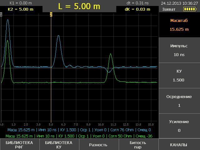 儀器誤差為 3 cm(在 VF = 1.499 時)——通過將有效采樣頻率增加到 3.2 GHz;