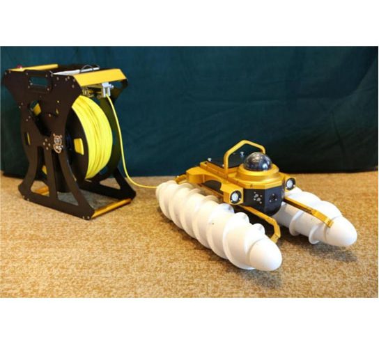 動力檢測船采用螺旋式推進結構,極大擴展了適用環境,除適用于水體外,還適用于淺水泥沙灘和沙地。在有水的管道、箱涵、河流等環境下可帶載聲吶探頭,回傳管道截面數據。同時,搭載了激光測距裝置,配合水下聲吶數據,可間接測量淤泥厚度。可適用于市政排水管道、暗河箱涵、河流淺灘等情況。