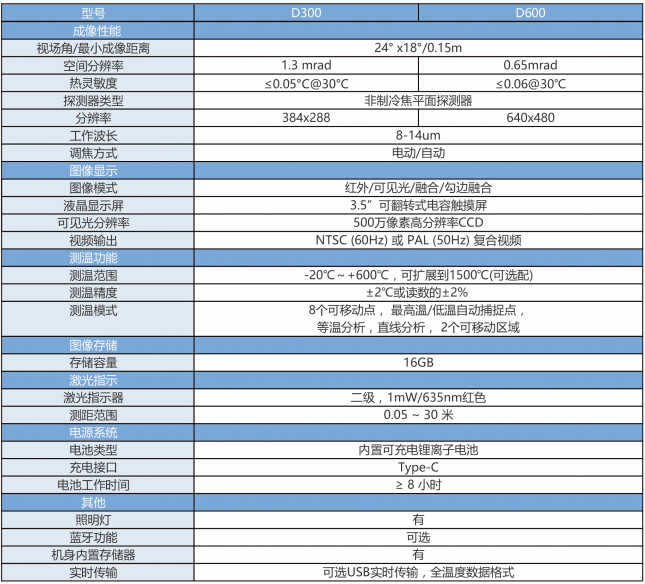 歐洲SATIR D300/D600全自動(dòng)工具型熱像儀 產(chǎn)品參數(shù):