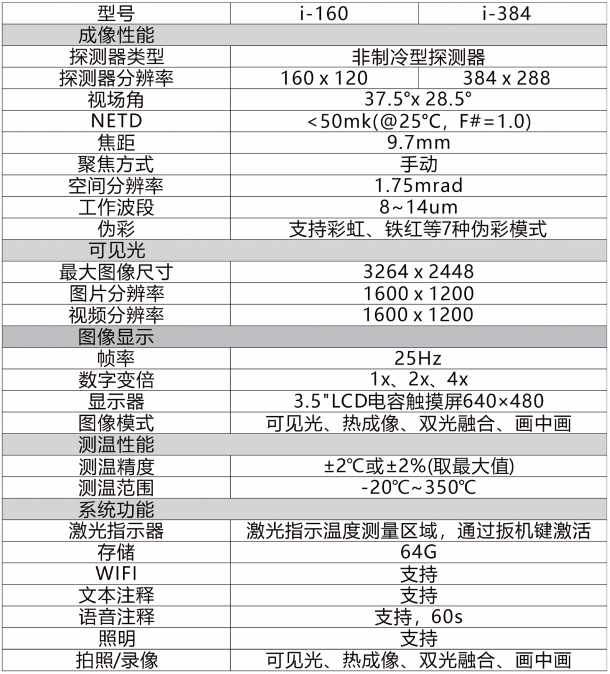 歐洲SATIR I-160/I-384工具型熱像儀 產品參數: