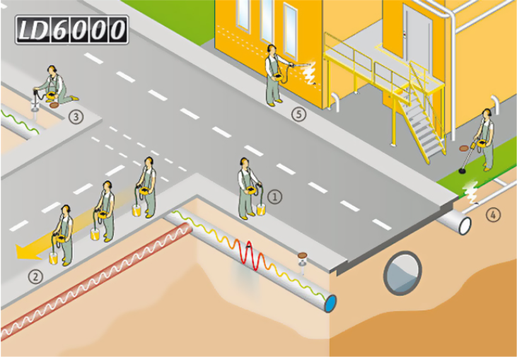 LD6000 為公用事業公司的水損失分析提供多種可能的用途:使用高靈敏度的地面探測器進行精確定位、飲用水系統中的微量氫氣氣體泄漏檢測、金屬和非金屬管道的路線檢測 – 或管道連接和密封件的密封性測試. 全面的設備配件,如接地探針、接地棒和高靈敏度探頭探測器,使 LD6000高精度綜合泄漏檢測儀成為德國工藝應用中快速可靠泄漏檢測的通用解決方案。