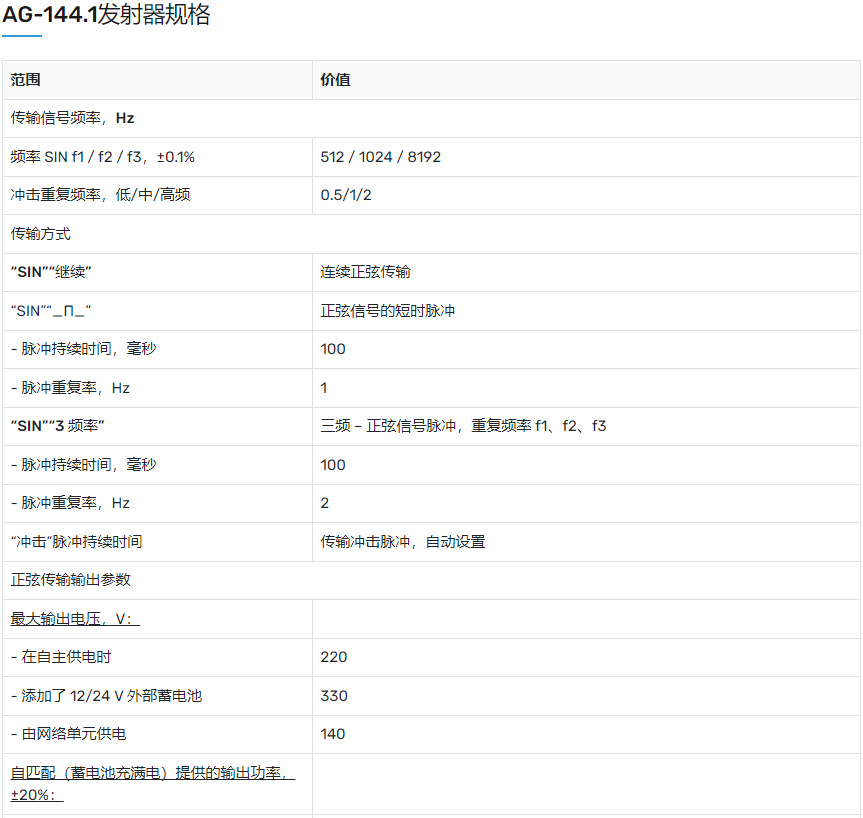 俄羅斯TECHNO-AC品牌非金屬管線探測儀Success TPT-522N 發射機AG-144.1 產品參數: