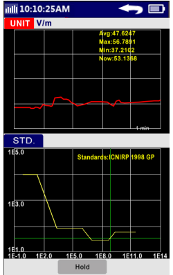 提供多種單位:非電離輻射V/m, Tesla, Gauss, A/m, dBm, W/m2, %等