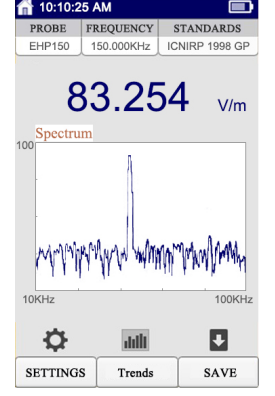低頻電磁場二合一探頭新增頻譜分析功能,通過頻譜模式可快速地判斷出環(huán)境中主要的污染源。