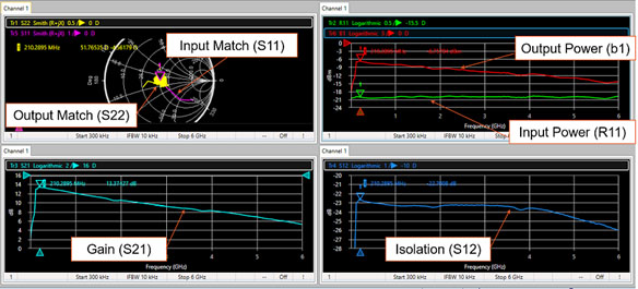 放大器必須為接收機(jī)提供靈敏度,并將高功率作為輸出。TTR500 可讓您全面檢定放大器的性能,以便與設(shè)計(jì)模擬進(jìn)行比較。使用內(nèi)置偏移器(兩種型號(hào)均為標(biāo)配)可為有源器件提供直流偏置,而無(wú)需外部電路的費(fèi)用和復(fù)雜性。與其他一些基于 USB 的 VNA 不同,TTR500 系列 VNA 能夠測(cè)量無(wú)源和有源器件,包括中低功率放大器。