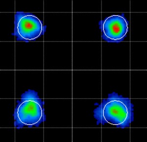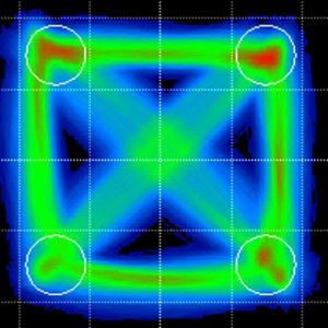 “顏色等級”功能提供了一個無限余輝圖,該圖中點的出現頻率由其顏色指示。此模式有助于揭示單色中不容易看到的圖案。請注意,以下示例的星座較低的組比頂層的具有較高的EVM。在大多數情況下,這表明正交調制器偏向正軌的距離過大。從近似正確的交叉點來看,這是不明顯的。在這種情況下,不當偏置的調制器會掩蓋不當偏置的驅動器放大器。