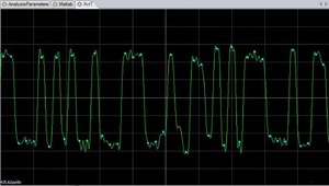 除了眼圖外,查看信號與時間的關系通常也很重要。例如,查看在誤碼附近的字段值在做什么是很有啟發性的。所有顯示符號中心值的繪圖都會通過將點涂成紅色來指示該符號是否出錯(假設數據已同步到所指示的圖案)。測量與時間圖以這種方式特別有用,因為它有助于區分由于噪聲,圖案相關性或圖案誤差引起的誤差。