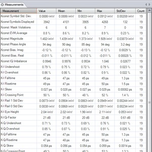 在星座圖上進行的測量可在與每個圖形窗口關聯的“彈出”面板上找到。星座圖可用的測量值在下面描述。