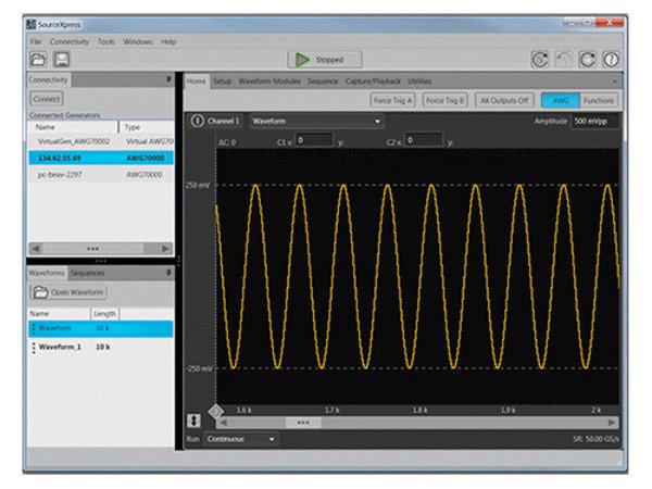 新型 SourceXpress 平臺(tái)把所有 AWG 儀器控制和波形生成功能放到 Microsoft? Windows PC 中。加載波形、創(chuàng)建序列、打開(kāi)回放,都無(wú)須在 AWG 上實(shí)現(xiàn)。所有波形創(chuàng)建插件都在 SourceXpress 平臺(tái)上以原生方式運(yùn)行,可以迅速重復(fù)測(cè)試信號(hào),而不必進(jìn)實(shí)驗(yàn)室。