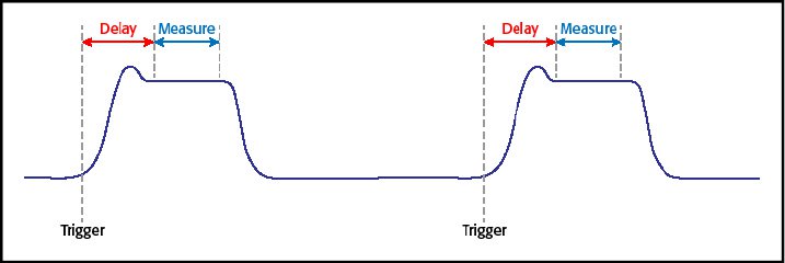 ?對快速變化或類似脈沖的負載進行時敏測量。外部觸發啟動采集。可編程延遲和測量次數支持 在指定時間對負載電流脈沖進行測量。