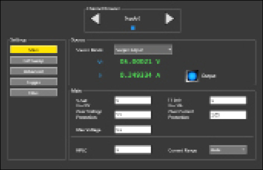 通過主屏調整電壓、電流、 電流量程、測量模式、保護等級 和其他功能。