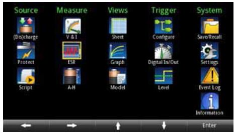 高亮度4.3 英寸TFT 顯示器用大的易讀字符顯示電壓、電流 和安時讀數、源設置及許多其他設置。基于圖標的主菜單提 供了用戶可以控制和設置的所有功能,可以快速進入源設置、 測量設置、顯示格式、觸發選項和系統設置。菜單簡短,所 有選項容易查找且描述清楚,可以使用導航輪、數字鍵盤或 軟鍵迅速設置測試參數。許多設置參數,如電壓和電流設置, 可以直接從主屏輸入;不復雜的測試無需進入主菜單進行設 置,就可以在主屏上使用軟菜單進行調節。不管測試要求簡 單還是復雜,Series 2281S 電源都為設置所有要求的參數提 供了一種簡便方式。