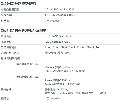 2450-EC 包括各種電壓或電流,用于源極或測量; nV /