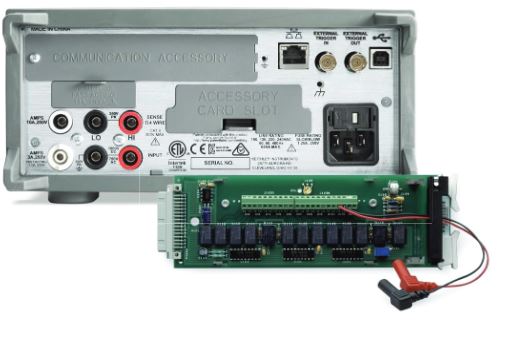 在表征或繪制設計特點曲線時,通常需要進行一系列測量。在這些應用中,最好能實現自動多通道測量。DMM6500 配有一張掃描儀卡,支持最多 10 通道開關,您可以進行自動多通道測量。用戶插入 2000-SCAN 卡后,可以實現 10 通道 2極測量或 5 通道 4 極測量。在開關拓撲支持的情況下,可以逐通道對函數編程。