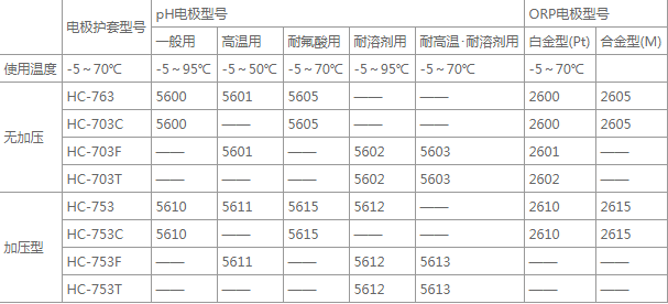| 排水中和控制監(jiān)控用 | HC-763型 | HC-753型 | ?采用半透明的PP(聚丙烯)材質(zhì)的護套,具有耐熱、耐藥性。 |
