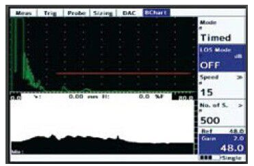 腐蝕檢測軟件可選B掃描顯示功能,即根據其壁厚顯示工件橫截面。B掃描刷新率從3-10次/秒可供選擇,可以存儲厚度讀數,還可以通過UTililty軟件將存儲數據傳輸到電腦上。