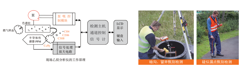 為解決城市燃氣泄漏檢測時地下沼氣的干擾,德國豎威公司專門研發了智能乙烷辨識儀VARIOTEC EGA,利用地下沼氣中不含有乙烷(C2H6)的特點,通過氣相色譜分析來實現對天然氣和沼氣的區分。