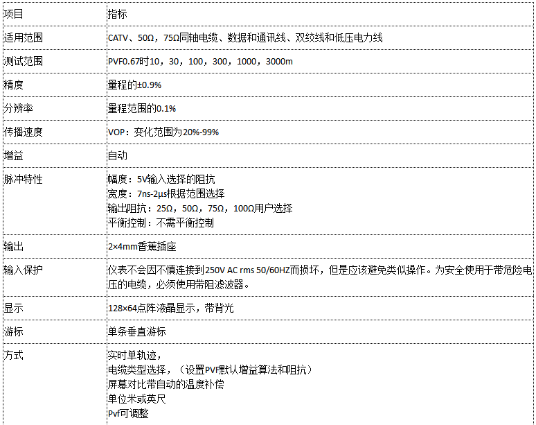 T810為真正的全能儀器。通過改變設置,可應用于短或長距離范圍的所有類型的金屬電纜,如CATV,50Ω、75Ω同軸電纜,數據通信線和電話線、雙絞線和低壓電力線等。