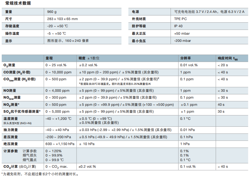 德國德圖 testo 340 煙氣分析儀 技術參數: