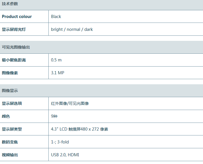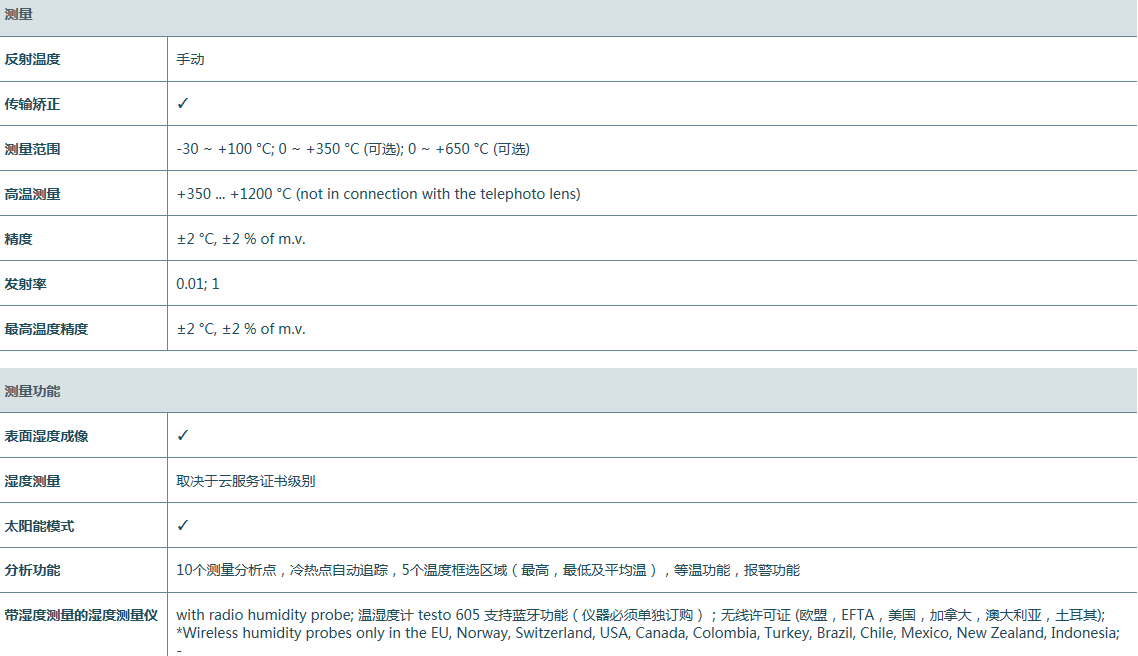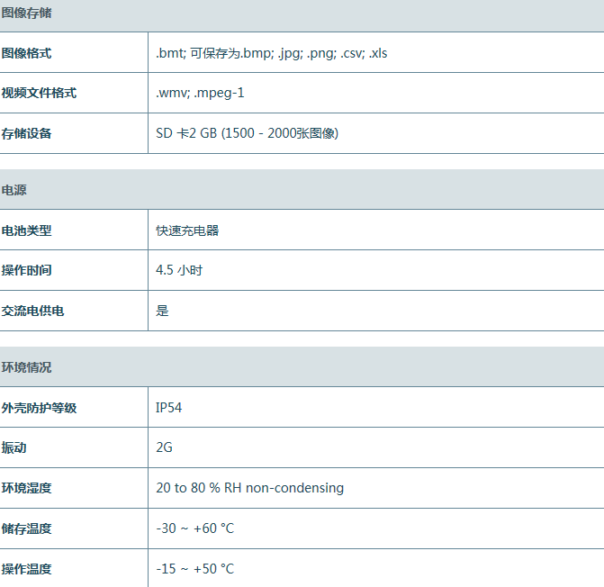 德國德圖 testo 885 高端紅外熱像儀相關參數: