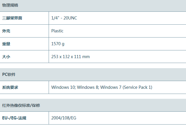 紅外分辨率 320 × 240 像素;采用SuperResolution紅外超像素技術后,可提升至 640 × 480像素;熱靈敏度< 30 mK